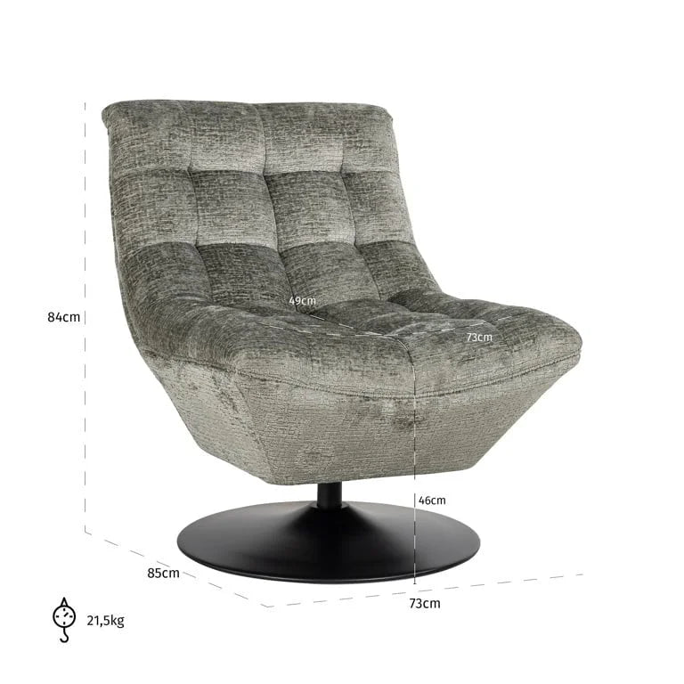 RICHMOND snurrfåtölj SYDNEY grön. Bekväm och elegant - dessa ord beskriver perfekt skönheten i Sydney-fåtöljen från Richmond Interiors. Det lätt lutande ryggstödet och den eleganta sitsen i ett dämpat grönt polyestertyg får dig att känna dig lyxig men ändå ombonad. De djupa sömmarna i kombination med den svarta metallbasen med vridfunktion bidrar till dess unika karaktär och praktiska egenskaper. Sydney är perfekt för såväl kontoret som andra moderna utrymmen. Olika färgversioner och fotpall finns tillgängliga. Mått: H 85 cm / B 73 cm / D 85 cm Bruttovikt: 22 kg.