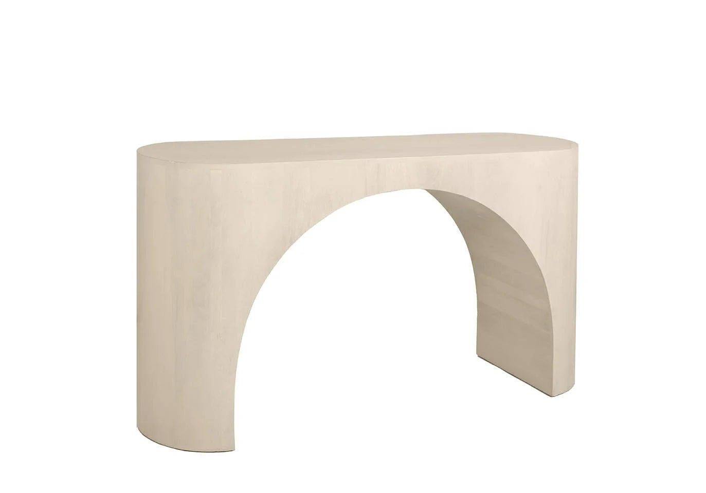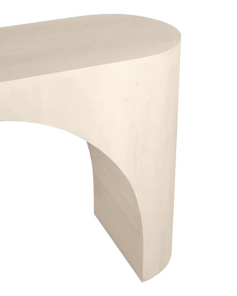 MaMaison konsol ICARO beige / trä. Ett unikt förslag för dem som söker en minimalistisk design med en konstnärlig touch. Tillverkad av massivt mangoträ i en subtil beige nyans, fascinerar den med sin bågformade design och skulpturala silhuett. Den eleganta och samtidigt moderna konstruktionen passar perfekt i både klassiska och samtida miljöer. Konsolen är utmärkt för hallen, vardagsrummet eller sovrummet som en funktionell inredningsdekoration. Denna modell är en del av Icaro-kollektionen, där du hittar andra möbler i samma estetik. Det är ett utmärkt val för älskare av sofistikerad stil och naturliga material. Mått: höjd 77 cm / bredd 136 cm / djup 40,5 cm Nettovikt: 31 kg.