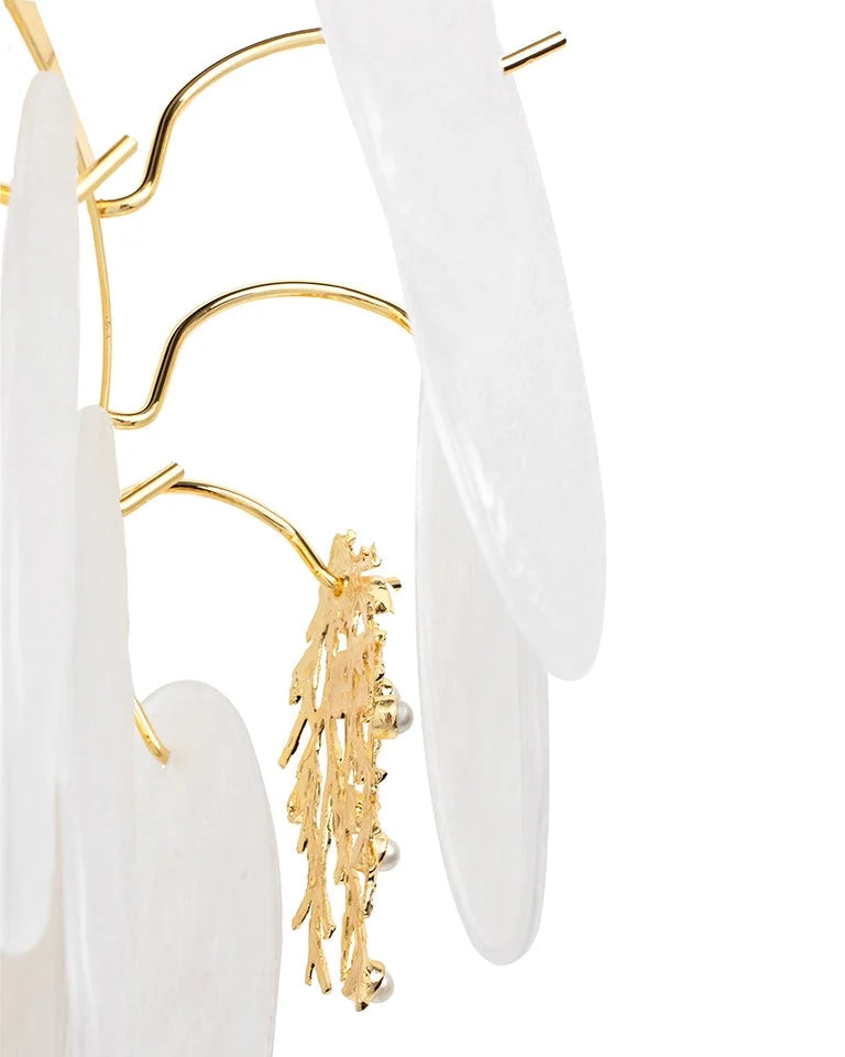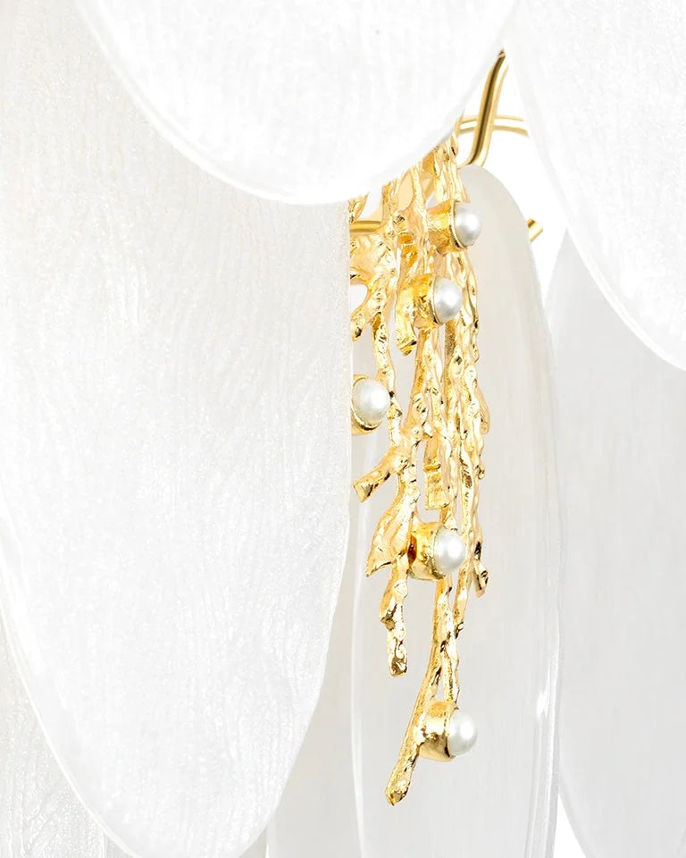 MOOSEE lampa wisząca CLARA 80 złota. Wyjątkowa forma, która łączy w sobie elegancję z dekoracyjnym akcentem. Wykonana z połączenia metalu i szkła, gwarantuje trwałość przy zachowaniu wyszukanego stylu. Nietuzinkowy i artystyczny kształt wprowadza do wnętrza niepowtarzalną atmosferę. Idealnie sprawdzi się w salonach, jadalniach, sypialniach, stylowych biurach oraz luksusowych hotelach. Doskonała do aranżacji w stylu glamour, skandynawskim, modern classic czy art déco. Odkryj całą kolekcję Clara i wybierz model, który wniesie do Twojego wnętrza wyjątkowy charakter. Światło: 15 x E14 max. 40 W (brak w zestawie) Oprawa: wys. 45 cm / szer. 80 cm / gł. 80 cm Mocowanie: szer. 12 cm / dł. 7 cm Przewód: 200 cm Waga netto: 15 kg Wymiary opakowania: 96 cm / 96 cm / 35 cm.