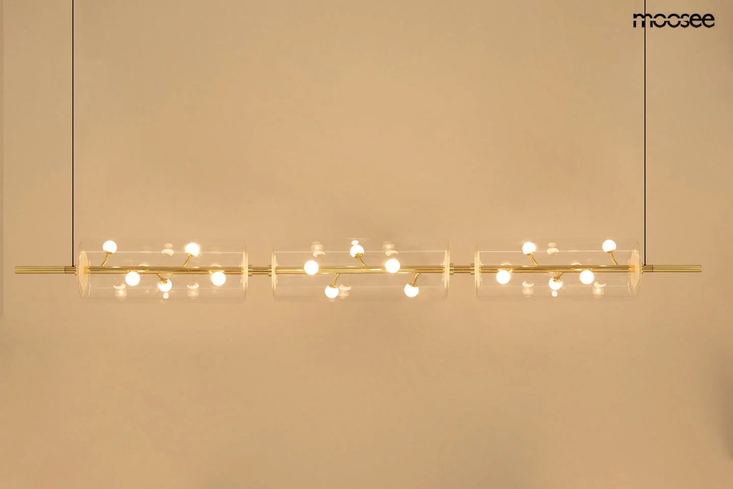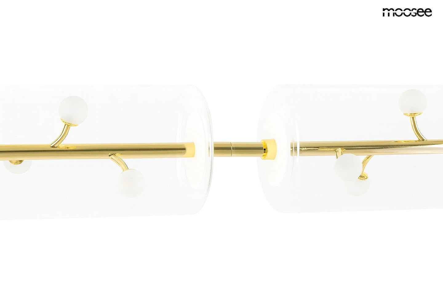 MOOSEE lampa wisząca CLARA złota. Niepowtarzalna lampa, która harmonijnie łączy elegancję z dekoracyjnym akcentem. Połączenie metalu i szkła nadaje lampie zarówno solidności, jak i estetycznej lekkości. Efektowny złoty odcień podkreśla ekskluzywny design i subtelnie rozświetla przestrzeń. Idealnie harmonizuje zarówno z eleganckim glamour, tradycyjną klasyką, jak i współczesnym stylem. Szukasz lampy, która wyróżni się niepowtarzalną formą - ta lampa jest stworzona dla Ciebie. Światło: LED 18 Oprawa: wys. 14 cm / szer. 125 cm / gł. 14 cm Mocowanie: śr. 7 cm / wys. 4 cm Przewód: 200 cm Waga netto: 2,9 kg Wymiary opakowania: 50 cm / 50 cm / 22 cm.